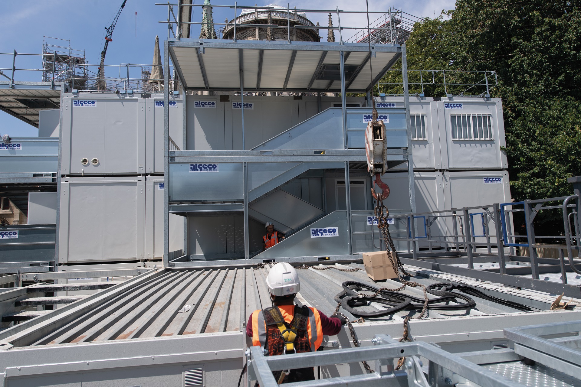 El proyecto de instalación de nuestros módulos tenía una gran complejidad, ya que los huecos de las escaleras dispuestos según lo deseado por el cliente obstruirían el camino de los bomberos. En este momento, los técnicos de Algeco revisaron sus planes en tiempo récord, para recrear, en el sitio, las entradas y salidas de los módulos.